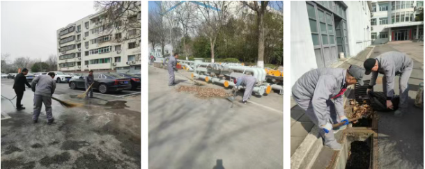 多線作戰(zhàn),精細(xì)保潔。圍繞會場及周邊區(qū)域,保潔團(tuán)隊系統(tǒng)開展環(huán)境衛(wèi)生提升行動:地面沖刷人員對停車場及道路實(shí)施“清掃—沖洗—刷洗”三步作業(yè),徹底清除積塵與污漬;道路清掃人員擴(kuò)大保潔范圍,對園區(qū)主干道、人行道及衛(wèi)生死角進(jìn)行循環(huán)清掃,確保落葉、紙屑等即產(chǎn)即清;室內(nèi)保潔人員對門窗玻璃、墻面扶手等進(jìn)行細(xì)致擦拭,并加強(qiáng)臺面、鏡面、便池等重點(diǎn)區(qū)域的除垢消毒,同步補(bǔ)足紙巾等易耗品,營造出清新整潔的室內(nèi)環(huán)境。