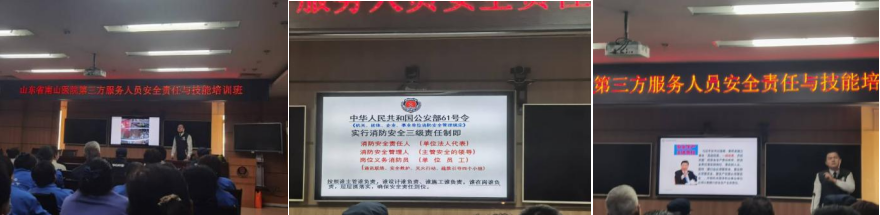 為進(jìn)一步強(qiáng)化醫(yī)院第三方服務(wù)人員安全責(zé)任意識(shí),普及消防安全知識(shí),提升應(yīng)急處置技能,筑牢醫(yī)院安全管理防線,2026年3月25日下午13點(diǎn),山東省南山醫(yī)院在西三樓會(huì)議室舉辦第三方服務(wù)人員安全責(zé)任與技能專題培訓(xùn)班。連心物業(yè)駐南山醫(yī)院項(xiàng)目部全體人員參加此次培訓(xùn)。