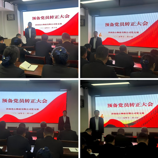2025年11月10日下午,濟(jì)南連心物業(yè)有限公司黨支部在1701會(huì)議室召開(kāi)第四季度黨員大會(huì),公司全體黨員、入黨積極分子及遞交入黨申請(qǐng)書(shū)人員48人參加本次大會(huì)。學(xué)習(xí)黨的二十屆四中全會(huì)精神、審議預(yù)備黨員轉(zhuǎn)正事宜等兩項(xiàng)議程。