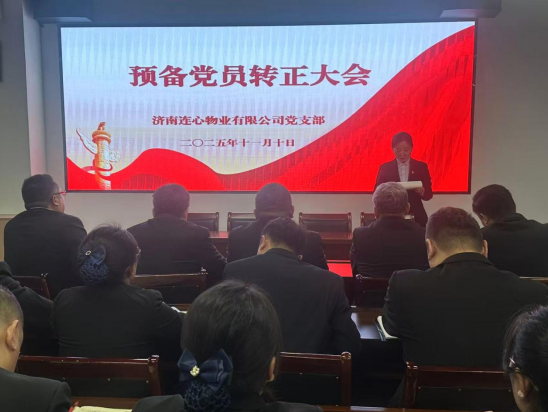 2025年11月10日下午,濟(jì)南連心物業(yè)有限公司黨支部在1701會(huì)議室召開(kāi)第四季度黨員大會(huì),公司全體黨員、入黨積極分子及遞交入黨申請(qǐng)書(shū)人員48人參加本次大會(huì)。學(xué)習(xí)黨的二十屆四中全會(huì)精神、審議預(yù)備黨員轉(zhuǎn)正事宜等兩項(xiàng)議程。