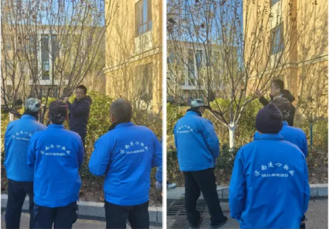 為提高濟南外國語學校項目綠化工作整體水平,構建美感與安全綠色校園環(huán)境,12月3日,連心物業(yè)濟外項目部組織舉行2025年冬季綠化會專項培訓。濟南外國語學校相關管理人員,連心物業(yè)副總經(jīng)理李義、項目經(jīng)理王金勇,物業(yè)綠化團隊及特邀綠化顧問齊聚會場,針對冬季校園綠化及苗木修剪等工作進行專項培訓學習。