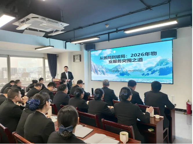 副董事長戚圣輝以《從困局到破局:2026年物業(yè)服務(wù)突圍之道》為題,深入剖析當(dāng)前物業(yè)市場進入“深海區(qū)”的行業(yè)現(xiàn)實,直面公司發(fā)展中的痛點、難點與弱點,明確提出2026年要打贏市場、項目、新賽道三場關(guān)鍵突圍戰(zhàn),引導(dǎo)全體管理人員強化責(zé)任擔(dān)當(dāng)、錘煉專業(yè)能力,以創(chuàng)新舉措破解發(fā)展困局,為公司發(fā)展出力獻策。