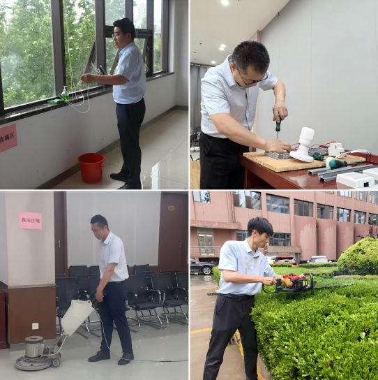 公司于5月9日組織管理人員技能決賽,15名項(xiàng)目經(jīng)理在地板打蠟、洗地機(jī)操作、線路接駁、手推式割草機(jī)操作等操作項(xiàng)目中充分展示了自己的專業(yè)水平。